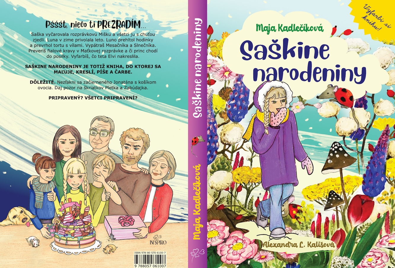 Pśśśt, niečo ti PREZRADÍM... Saška vyčarovala rozprávkovú Mišku a všetci ju s chuťou zjedli. Luna v zime privolala leto. Luno prehltol hodinky a prevrhol tortu s vílami. Vypátraš Mesačníka a Slnečníka. Preveríš fialové kravy v Maťkovej rozprávke a či princ chodí do posilky. Vyfarbíš, čo teta Elvi nakreslila.SAŠKINE NARODENINY JE TOTIŽ KNIHA, DO KTOREJ SA MAĽUJE, KRESLÍ, PÍŠE A ČARBE. DÔLEŽITÉ. Nezľakni sa začierneného Jonatána s košíkom ovocia. Daj pozor na škriatkov Pletka a Zabúdajka."