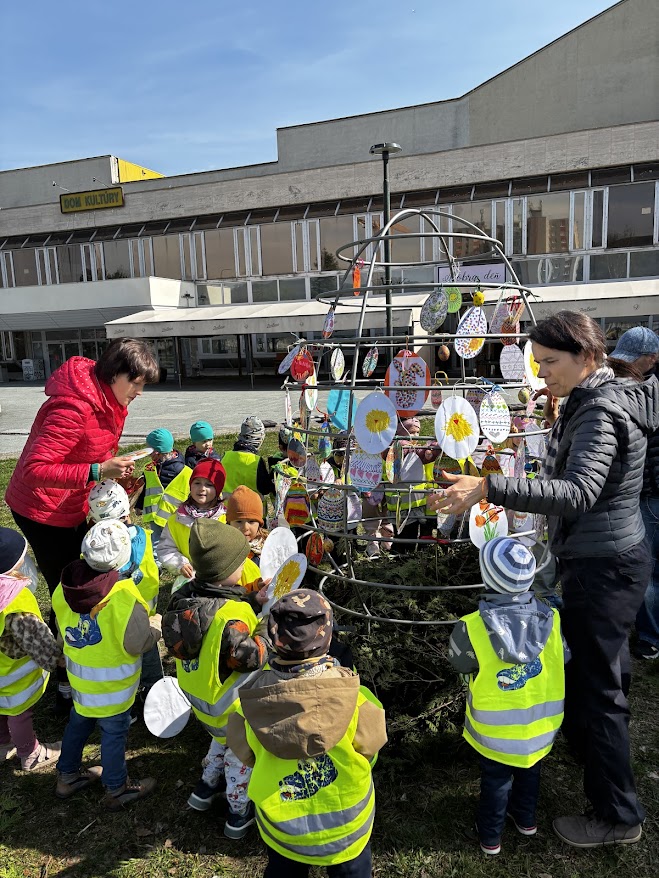 Dnes, 25.3.2026, sa deti z 1. a 2. triedy vyzodbili Veľkonočné vajčko pred DK Dúbravka. Priblížili okoloidúcim príchod sviatkov jari.
