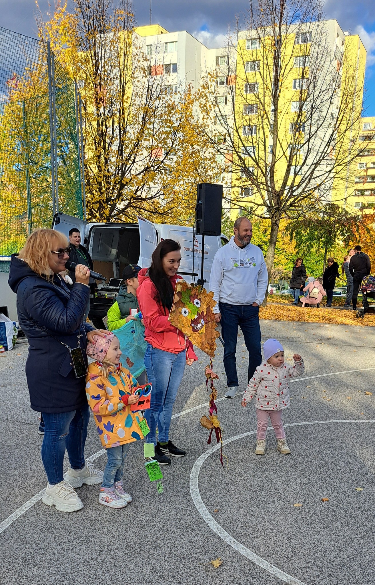 Klárka S. získala cenu za ručne vyrobeného šarkana, ktorého si vytvorila na edukácii v materskej škole z obdĺžnikov (téma: Farby a tvary v jeseni).